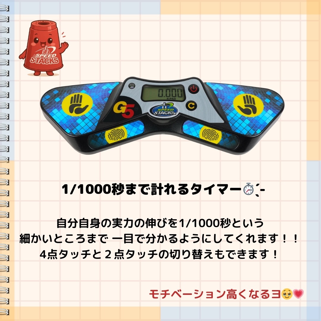 公式競技Pro2_3点セットは、スポーツスタッキングファン必見のアイテムです。 プロカップは通常カップより約2g軽く、さらに速いタイムを出したい方向けのアイテムです! また、日本オリジナルG5マットは2024年12月から販売した商品です! 日本オリジナルの特製マットと合わせて、競技に必要な全てをそろえたこのセットを使えば、あなたのスキルが一段と向上します。 この3点セットには、公式競技認定の心地よい触感の日本オリジナルマットが含まれています。 これにより、練習でも本番さながらの体験ができ、集中力を保つことができます。 お早めにご購入いただき、友人や仲間たちに差をつけるチャンスをお見逃しなく! 競技者同士の熱い戦いをサポートする、特別なアイテムを手に入れましょう。 この公式競技通常3点セットが、あなたのパフォーマンスを引き上げ、さらなるレベルアップを実現します! ※G5タイマーは1/1000秒計れるタイマーになります!